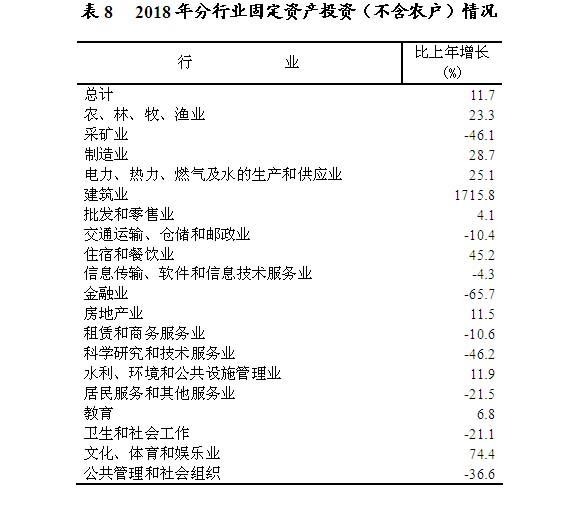 在固定资产投资(不含农户)中,第一产业投资增长23.3%;第二产业投资增长24.5%,其中,工业投资增长22.6%;第三产业投资增长3.8%。从到位资金情况看,全年到位资金下降17.4%。其中,国家预算资金增长60.2%,国内贷款增长3.4%,自筹资金下降29.2%,其他资金下降70.0%。