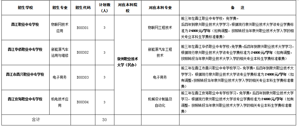 三明2024年新增中职本科“3+4”贯通培养试点项目招生计划30人