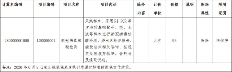 二、新冠病毒核酸检测临时纳入我省住院医保支付范围,不设个人先行自付比例,按职工和城乡居民基本医疗保险政策规定报销。