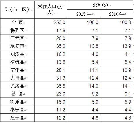 三明市2015年全国1%人口抽样调查主要数据公报[1]