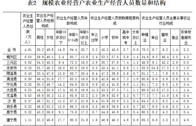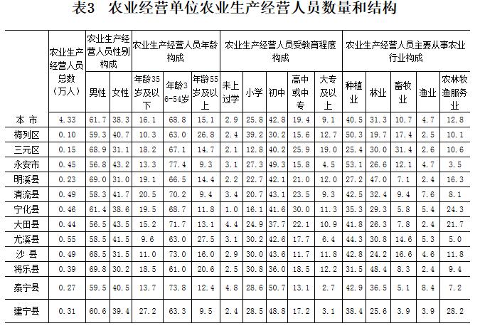 三明市第三次全国农业普查主要数据公报(第五号)
