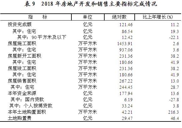 全年房地产开发投资121.46亿元,比上年增长11.2 %。其中,住宅投资86.54亿元,增长19.3%;办公楼投资3.29亿元,下降41.2%;商业营业用房投资11.31亿元,下降17.1%。