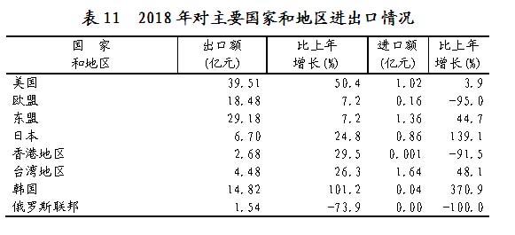 全年进出口总额172.30亿元,比上年增长10.1%。其中,出口164.50亿元,增长12.0%;进口7.80亿元,下降18.9%。进出口顺差156.70亿元,比上年增加19.40亿元。对“一带一路”沿线国家和地区出口54.27亿元,下降1.5 %。