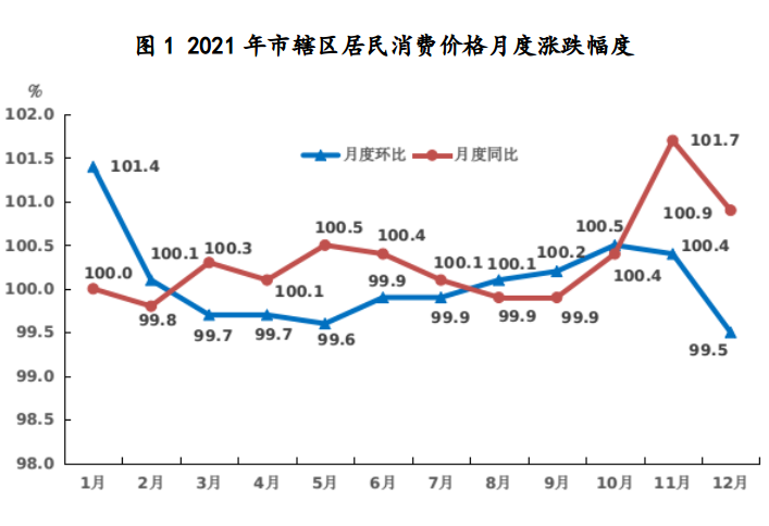 表2 2021年市辖区居民消费价格比上年涨跌幅度 |