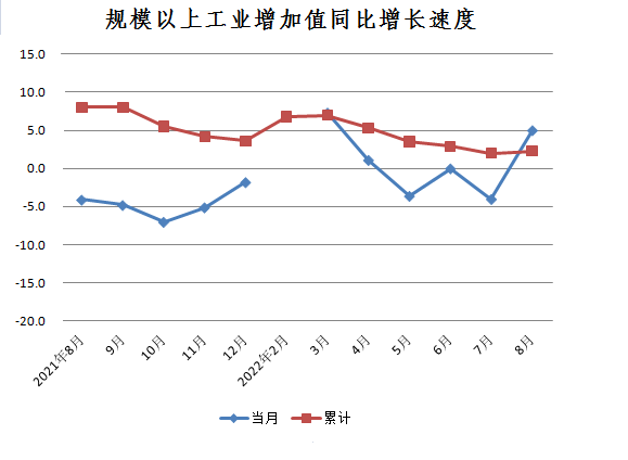 1-8月,全市规上工业平稳生产,规模以上工业增加值同比增长2.3%,比1-7月提高0.3个百分点,其中8月份增长5.0%,增速较7月份加快9.0个百分点。