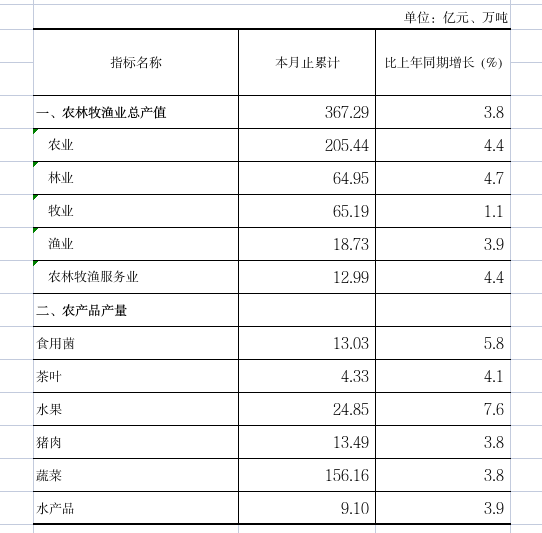 2025年前三季度农林牧渔业总产值及部分农产品产量