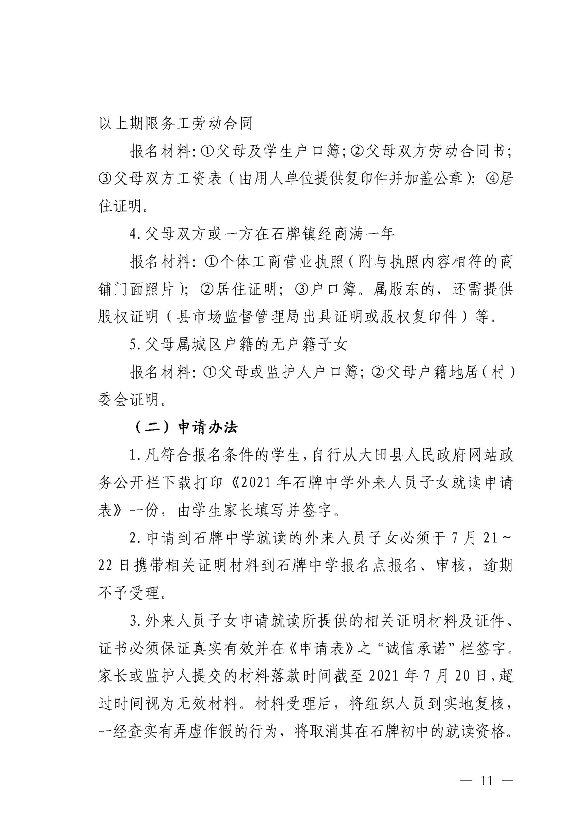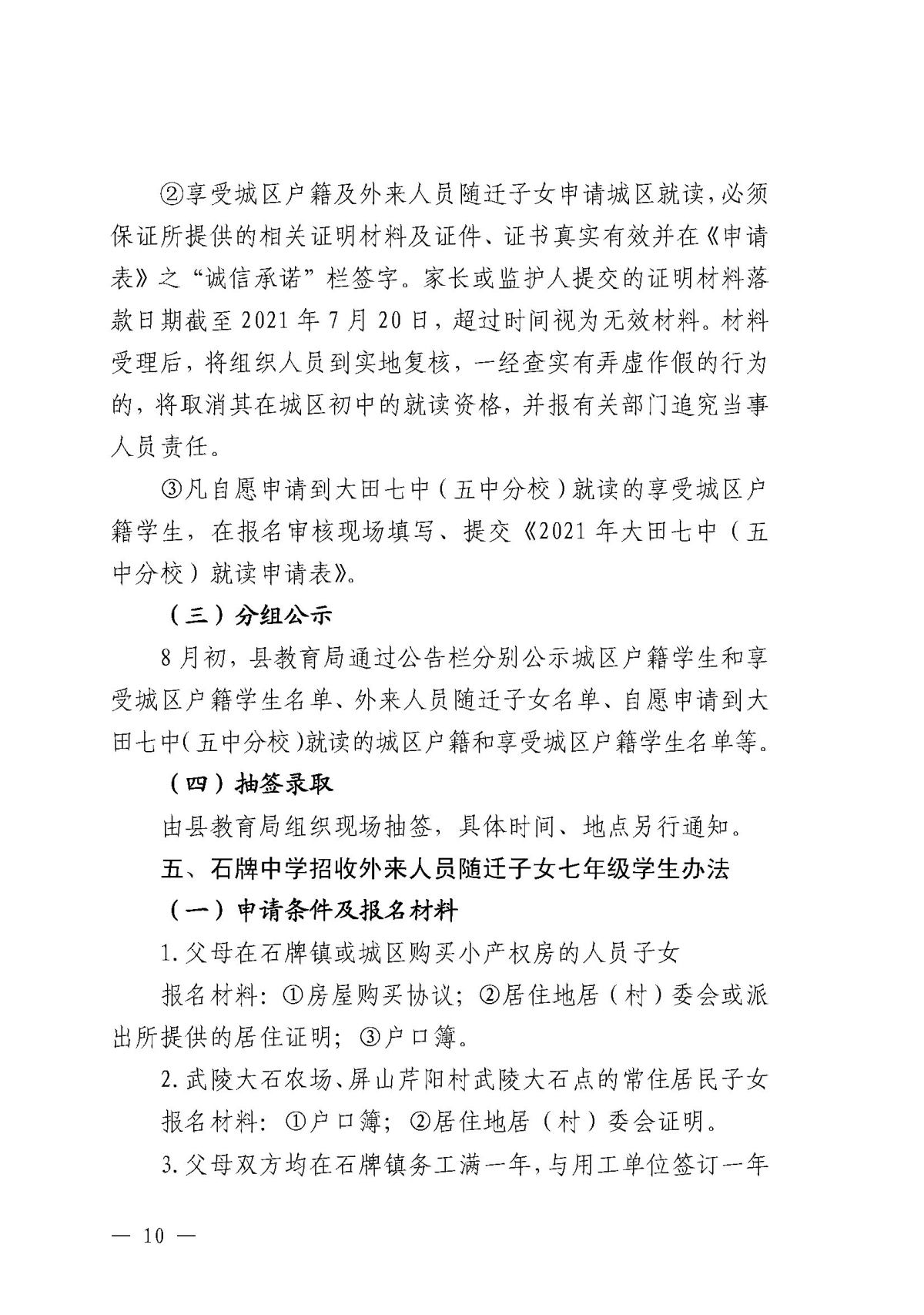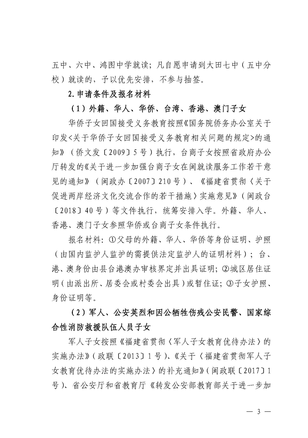 大田县人民政府办公室关于印发大田县2021年城区初中招生工作方案的通知