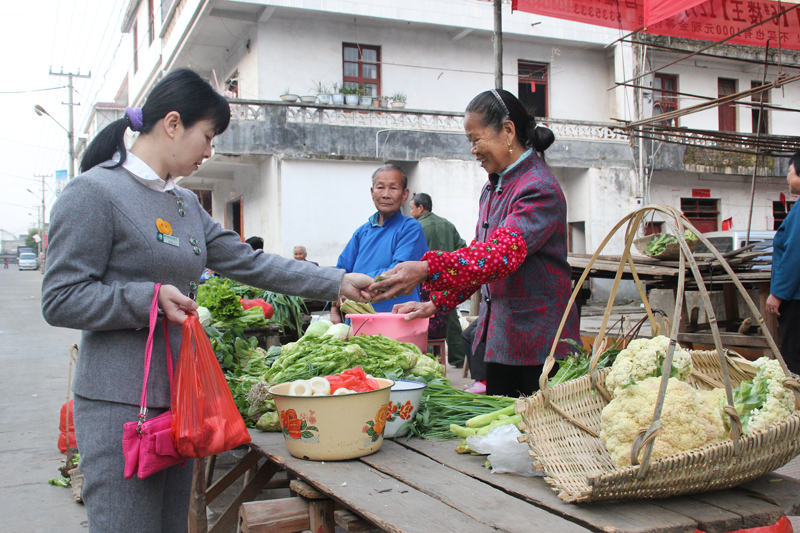 6点50分,黄小清拎着她的玫红色小提包出门了。步行两分钟就到菜市场。黄小清挑了适合老人们吃的花菜、萝卜、葱、豆腐、米果和肉(乡里卖肉是排骨、瘦肉、肥肉、猪皮一体卖的,黄小清让摊主把肉分类切好。)。这些菜是每天给院里陈安勇、陈香莲夫妇买的。陈安勇(86岁)和陈香莲(76岁),是在幸福敬老院里喜结连理的,婚礼是黄小清主持的。