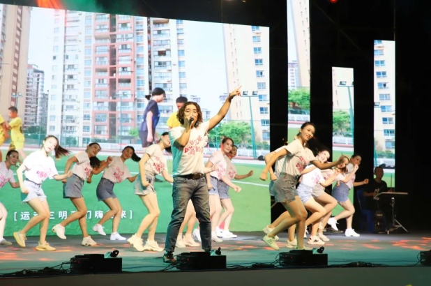 “嗨嗨嗨,我们嗨起来,运动三明我们嗨起来……”