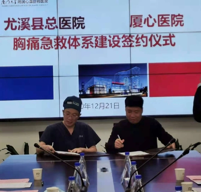 为贯彻落实国务院办公厅《关于推进分级诊疗制度建设的指导意见》和《关于推进医疗联合体建设和发展的指导意见》等文件要求,尤溪县总医院与厦门大学附属心血管病医院利益共享、责任分担,签订医联体协议,围绕心血管专科疾病的预防、诊疗、人才培养和临床研究,开展业务合作和学术交流。