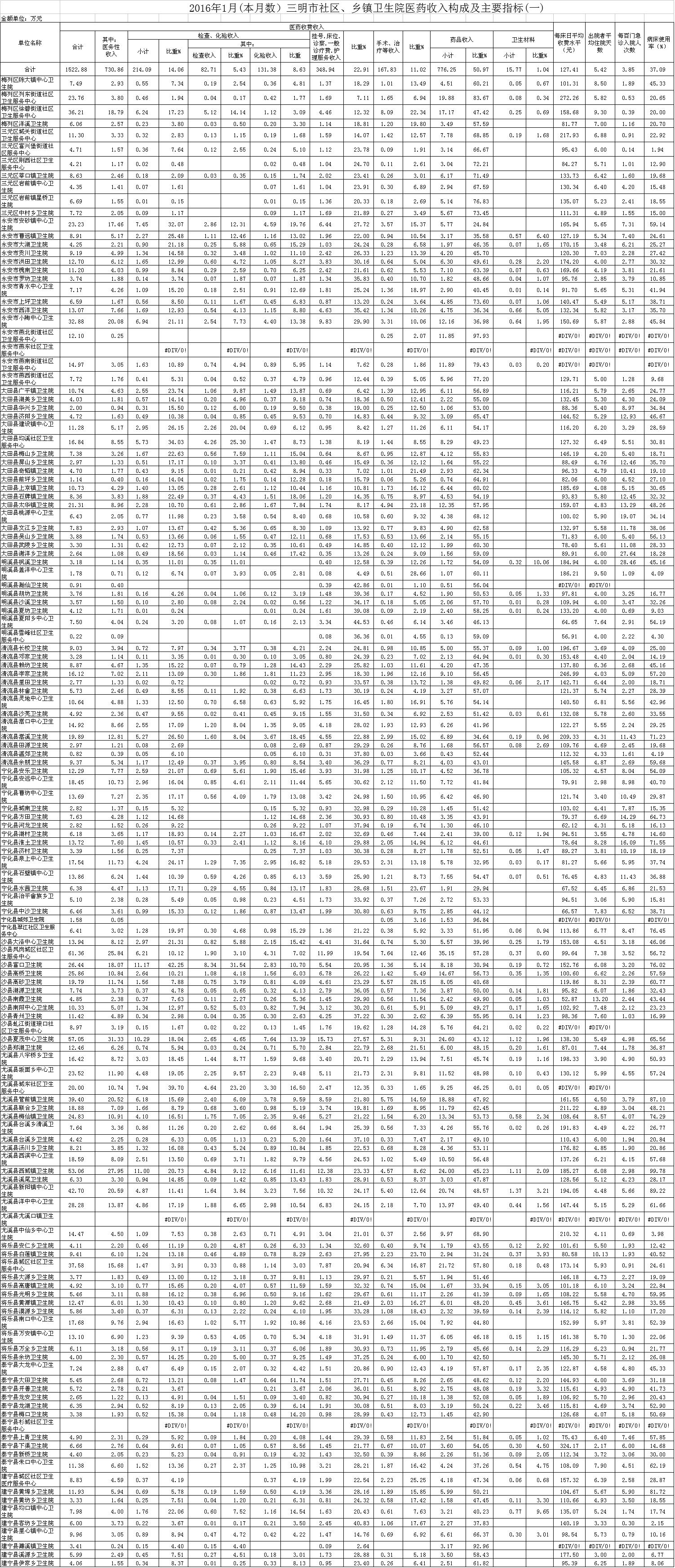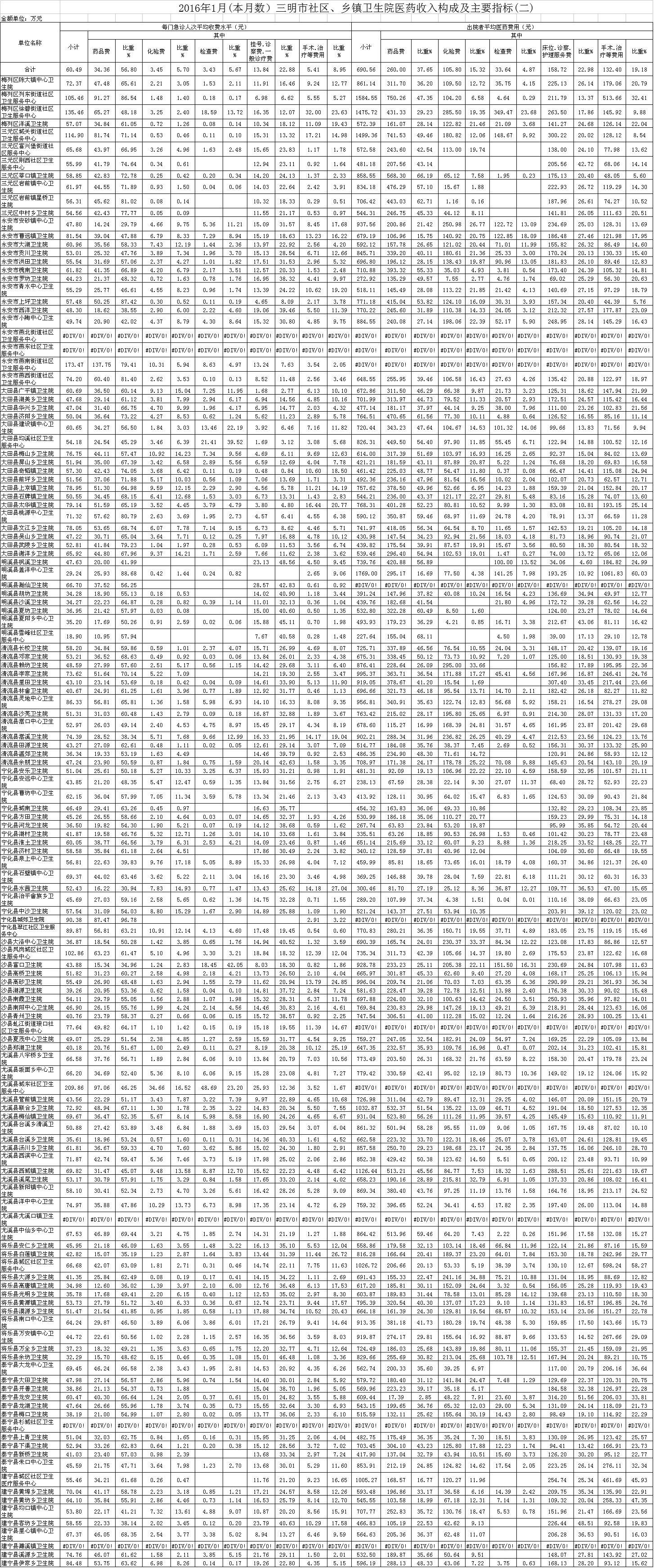 2016年1月(本月数)三明市社区、乡镇卫生院医药收入构成及主要指标(二)
