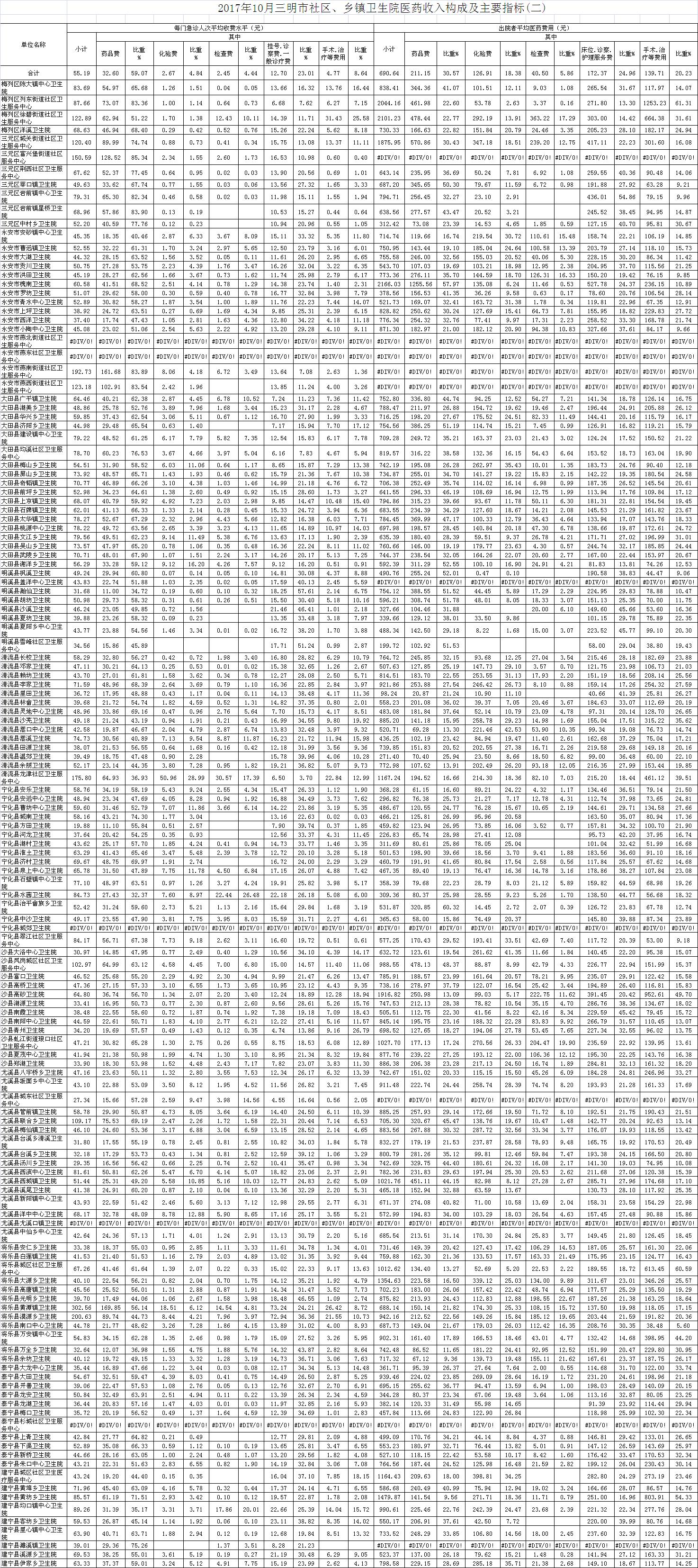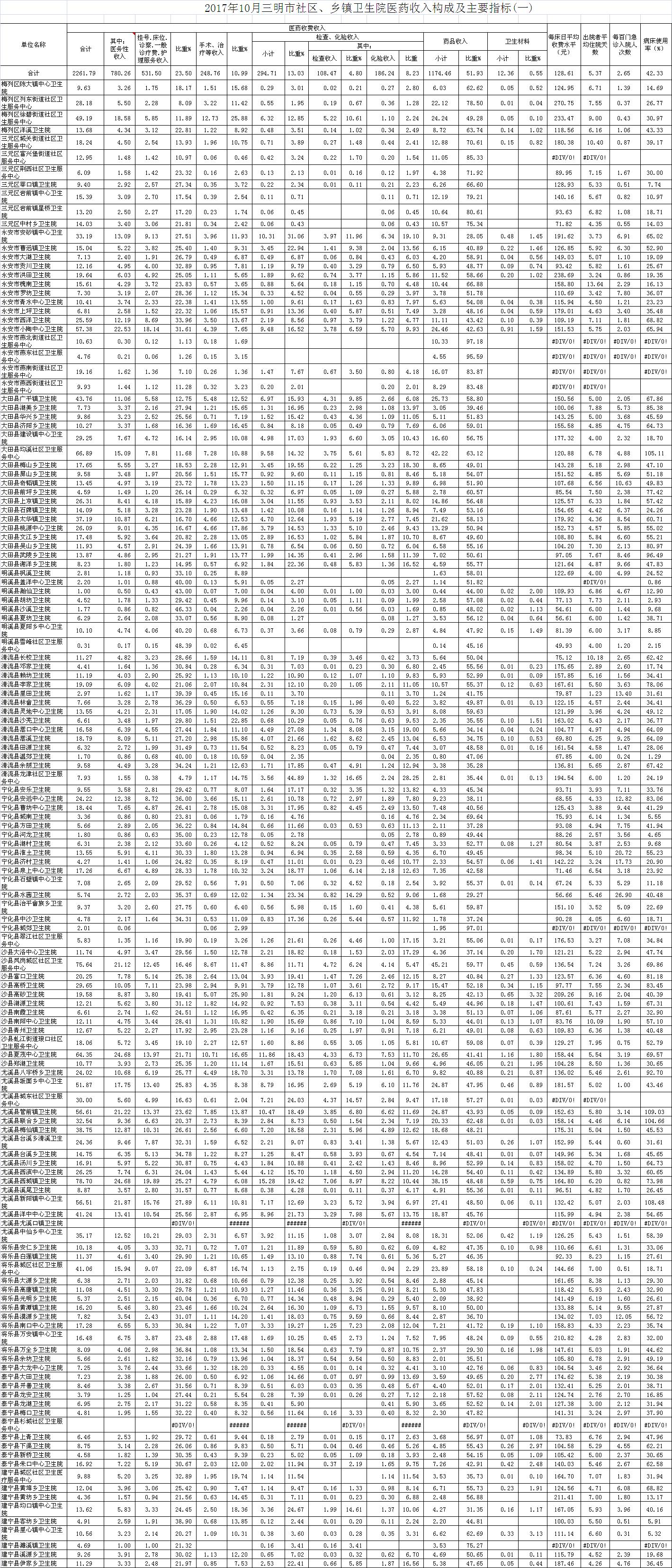 2017年10月三明市公立医疗机构运行情况