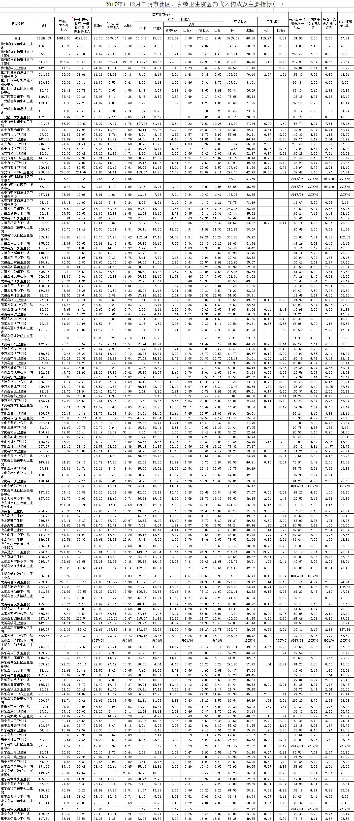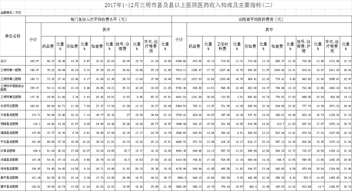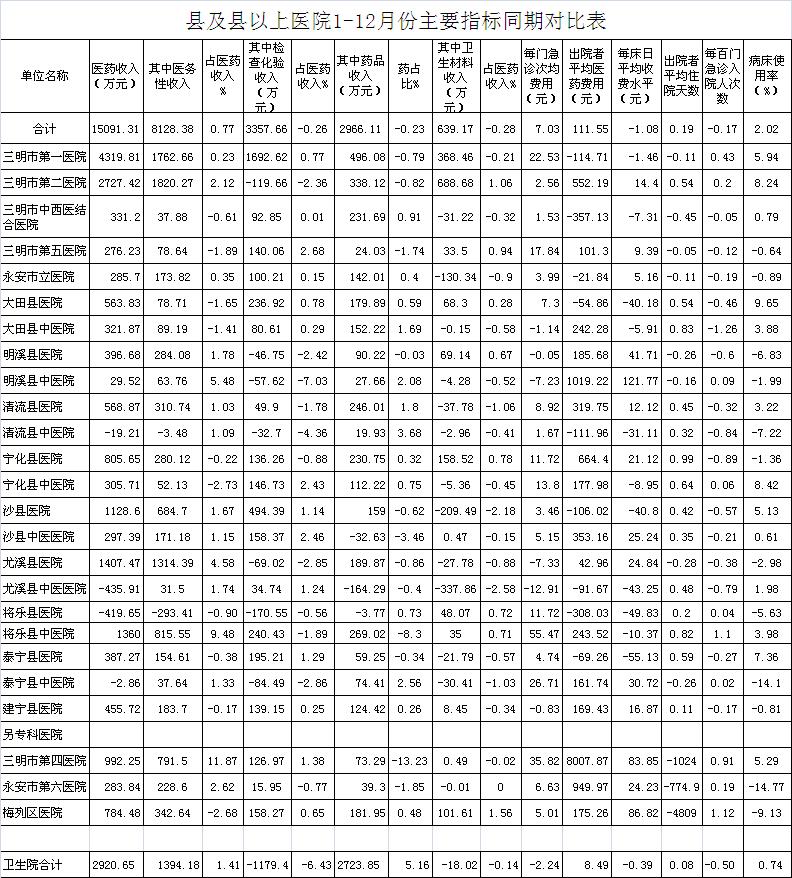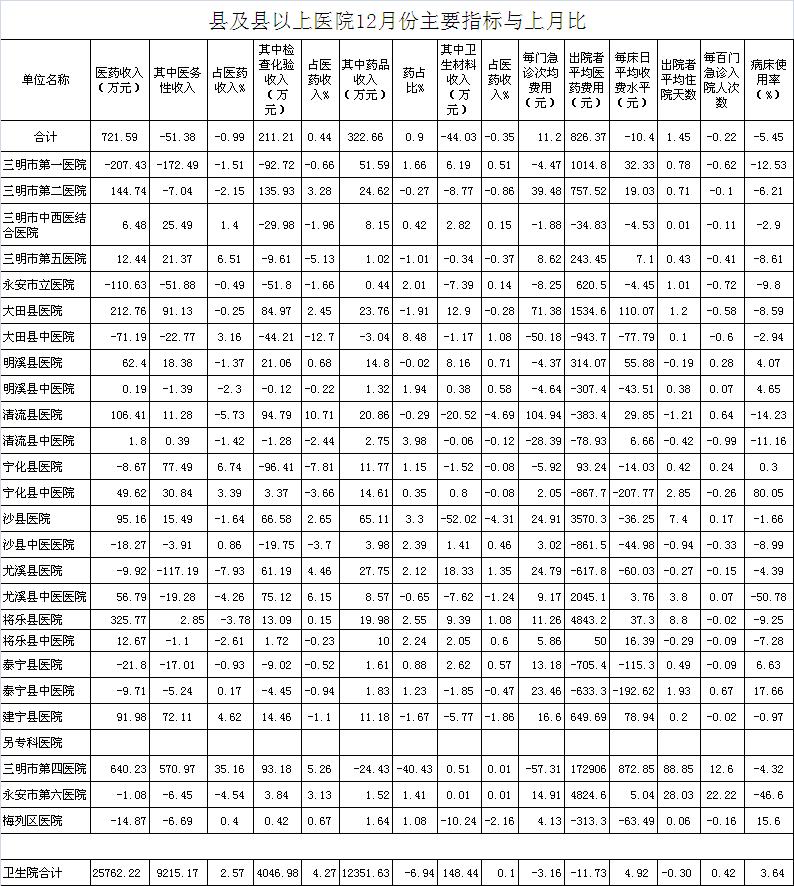 2017年12月三明市公立医疗机构运行情况公布