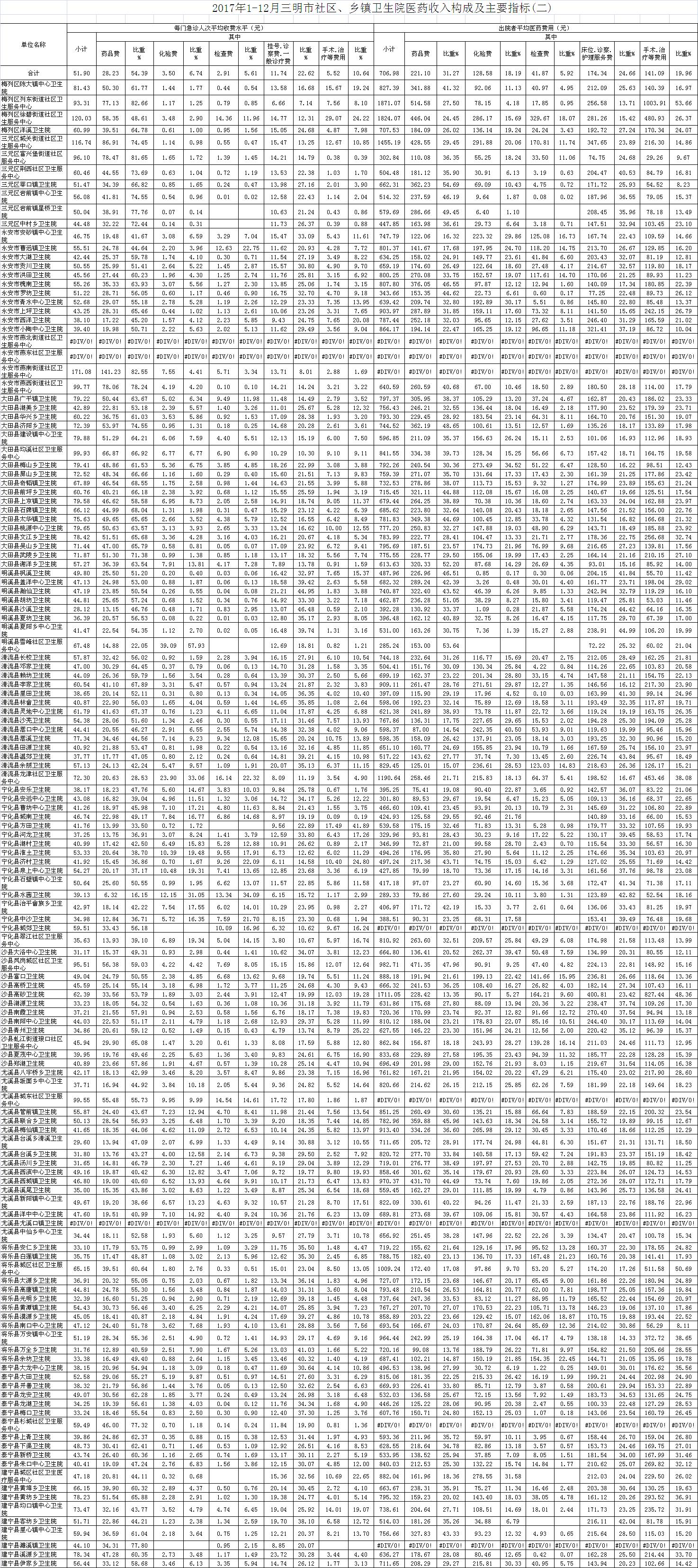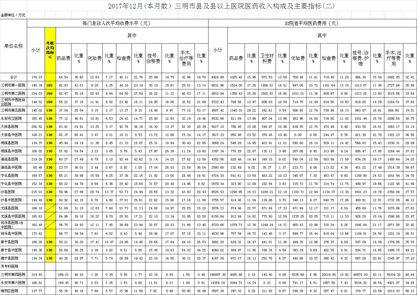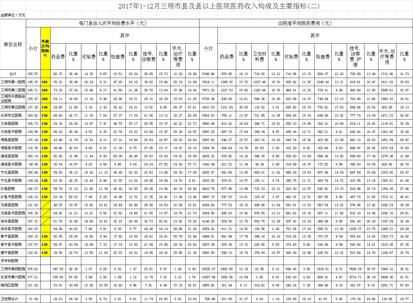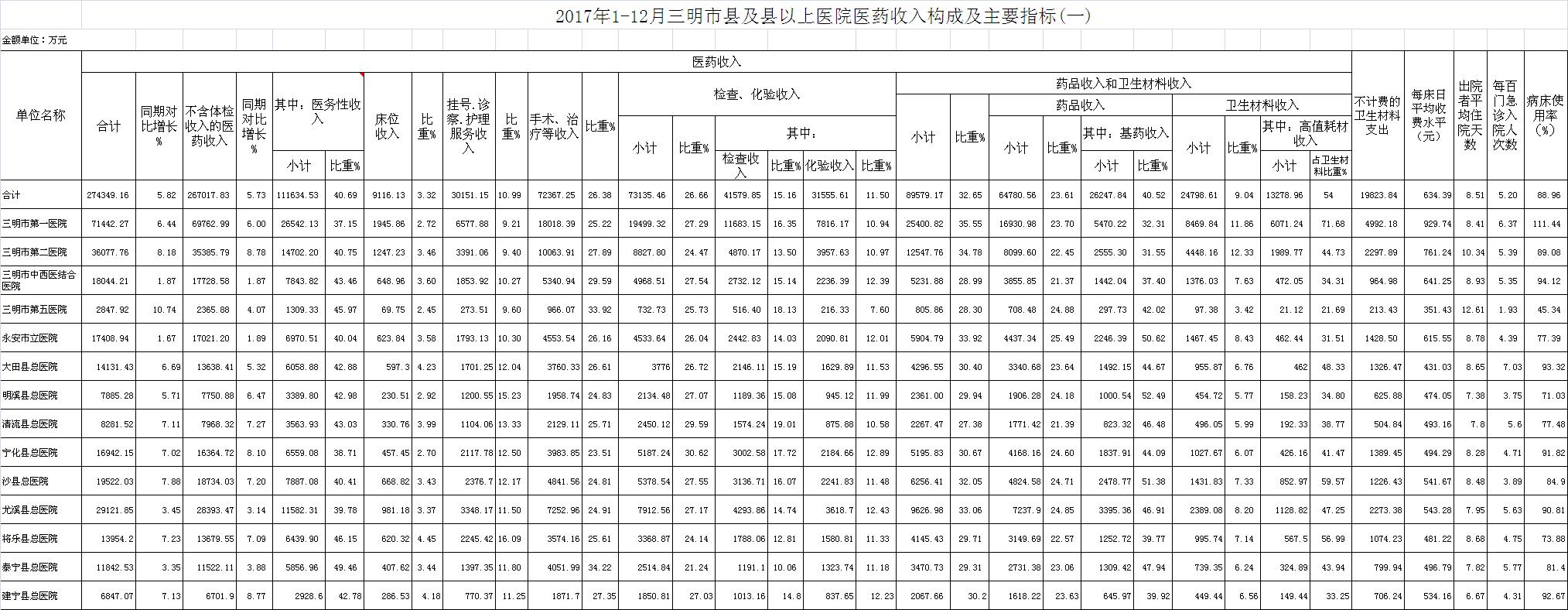 2017年12月三明市公立医疗机构运行情况公布