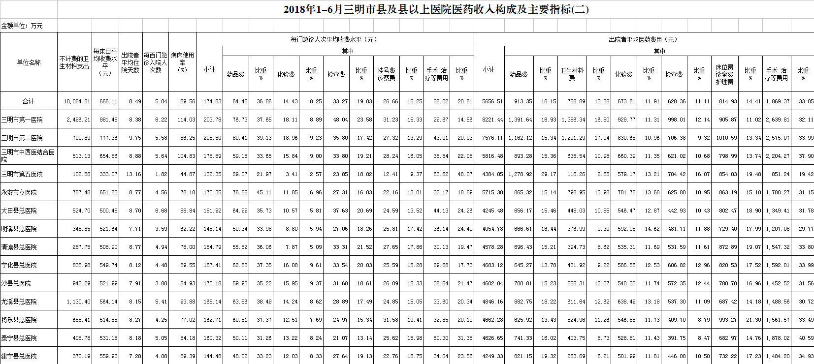 次均费用。6月份22家县级以上医院每门诊次均费用177.20元,比去年同期的166.60元,增加10.60元。达标医院2家,超标16家(将乐总医院、尤溪县医院与尤溪县中医院不参与次均费用考核),其中沙县医院超过65.68元、泰宁县中医院超过50.77元、大田县医院超过49.56元;出院者平均费用5880.58元,比去年同期5378.95元,增加501.63元。