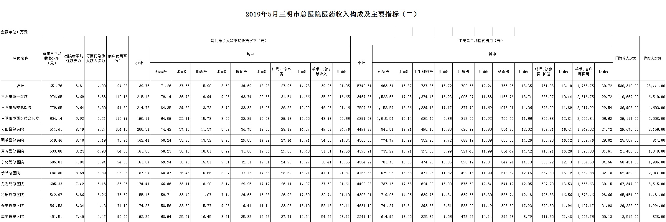次均费用。5月份12家总医院每门诊次均费用188.98元,比去年同期的179.49元,增加9.50元。出院者平均费用5949.15元,比去年同期5724.62元,增加224.53元。