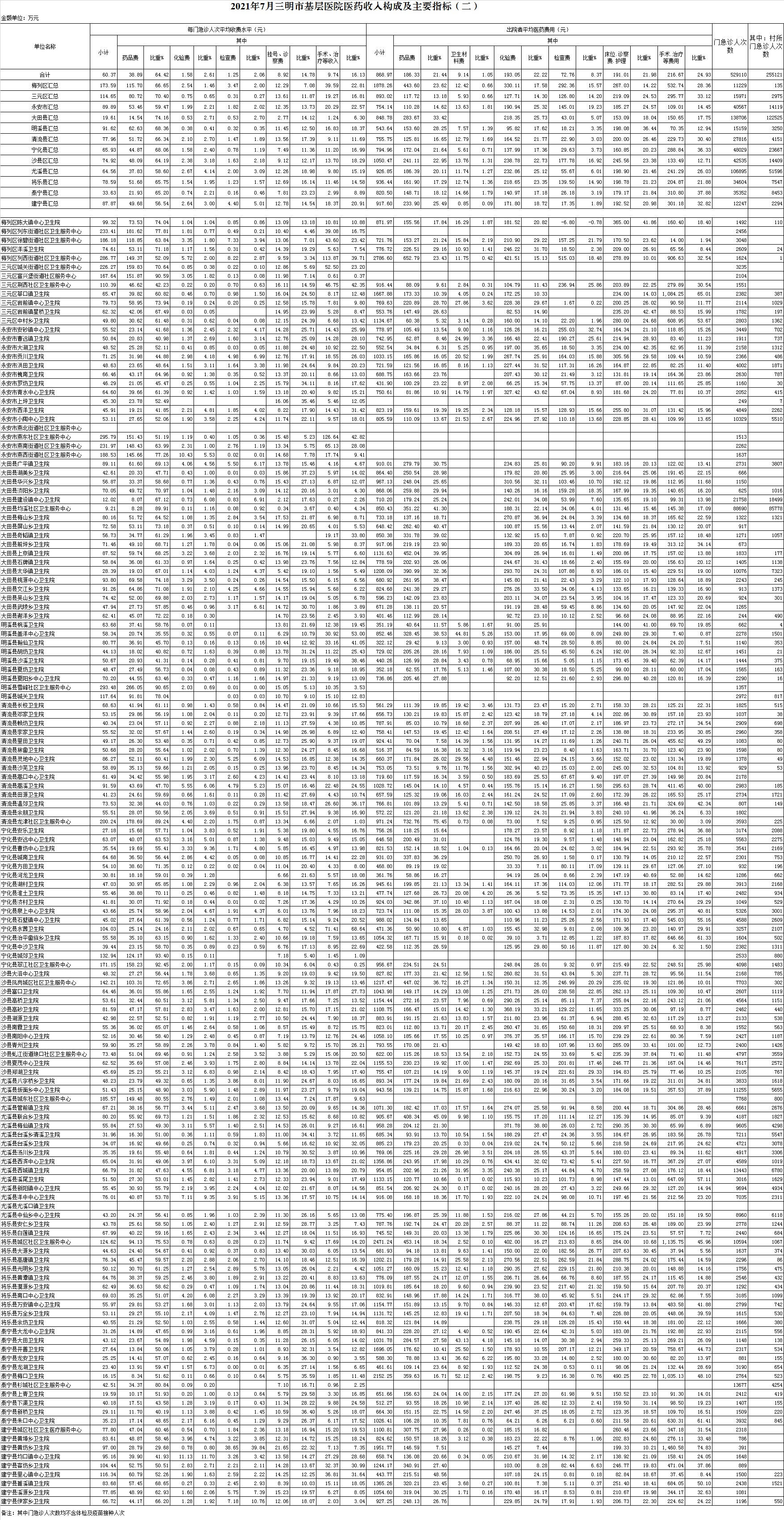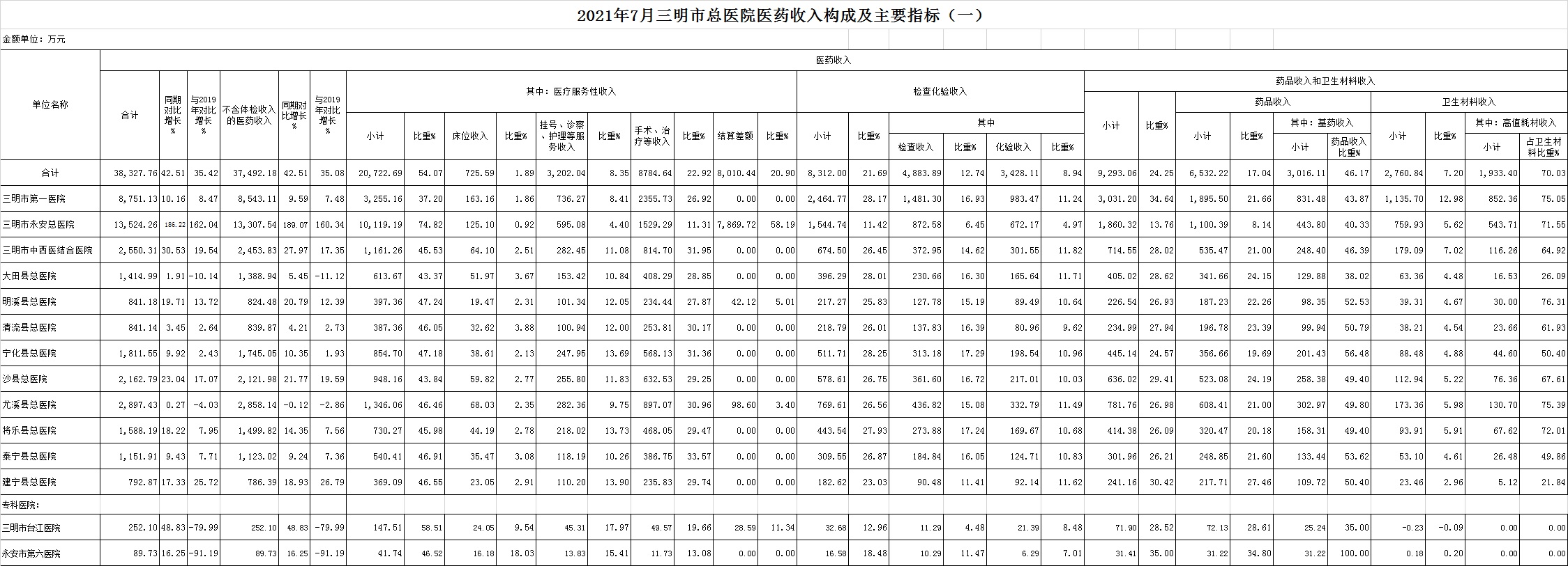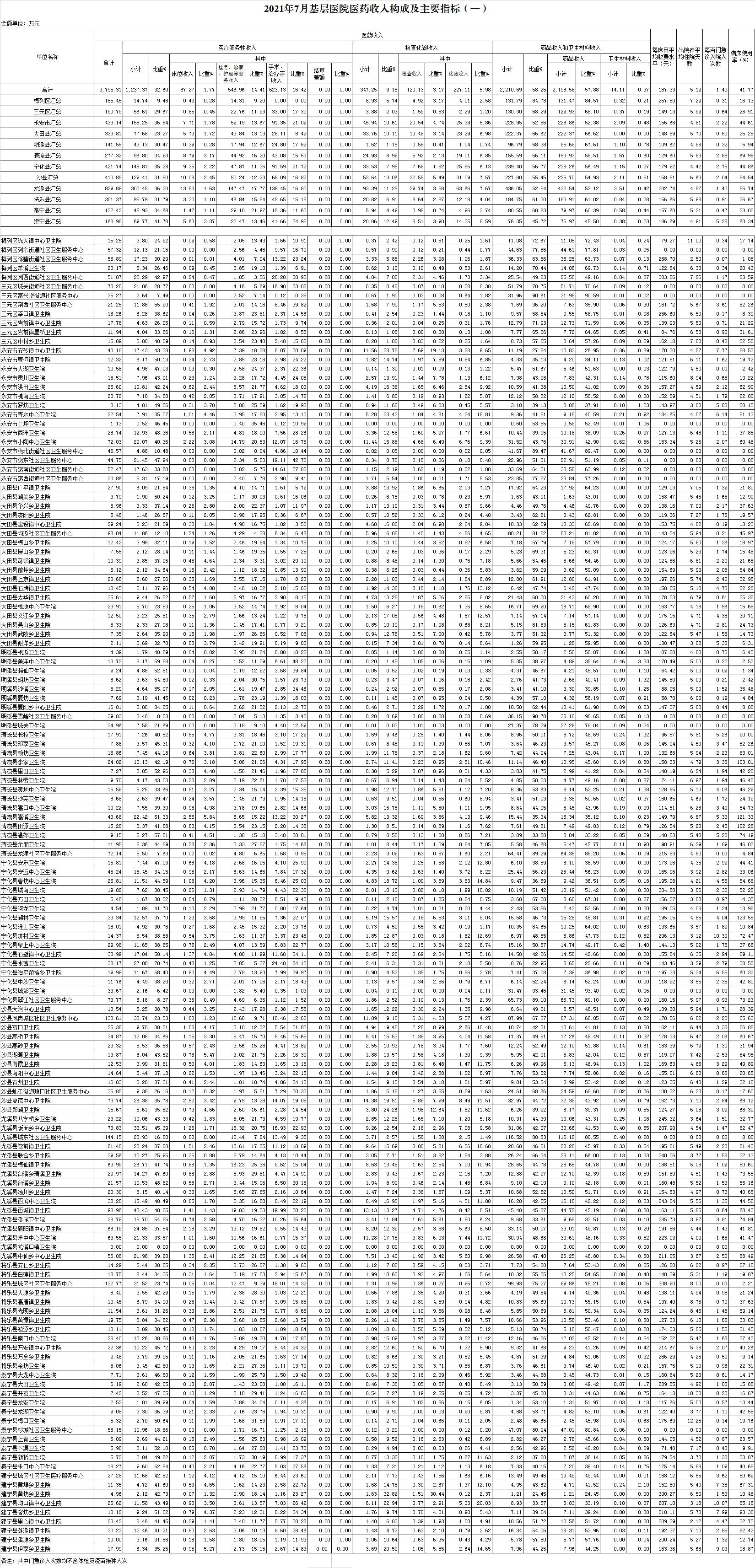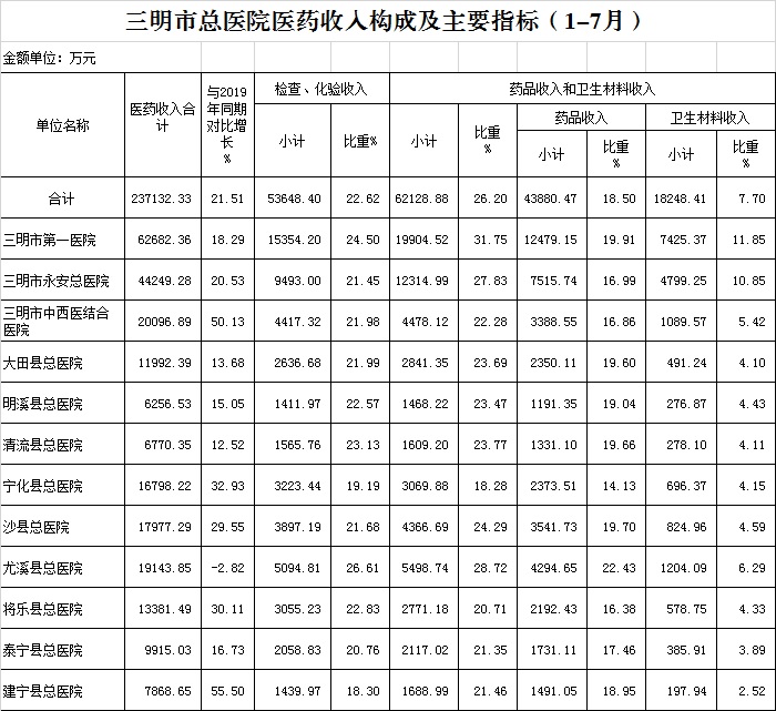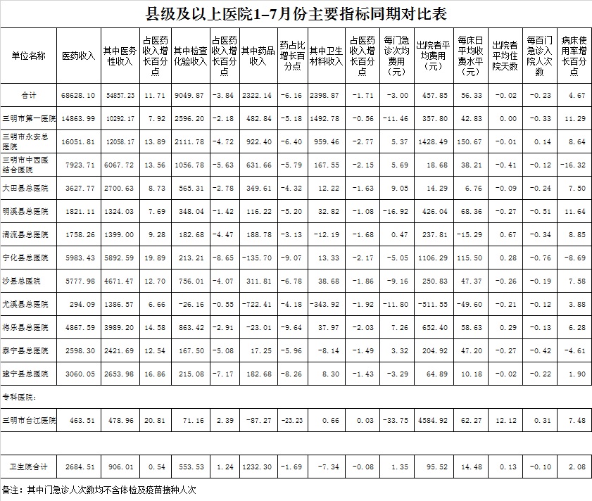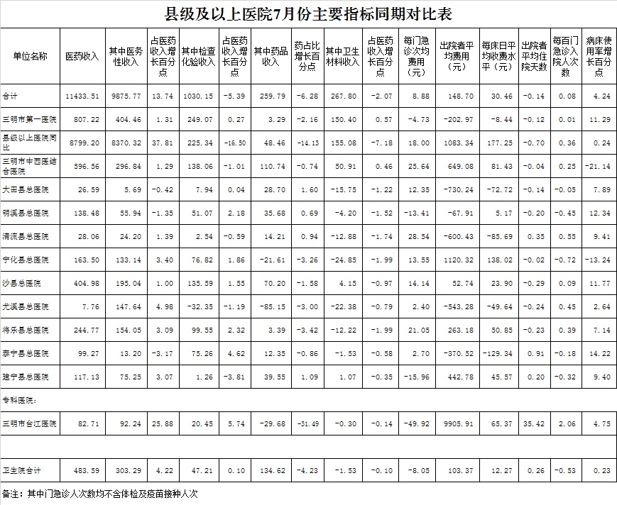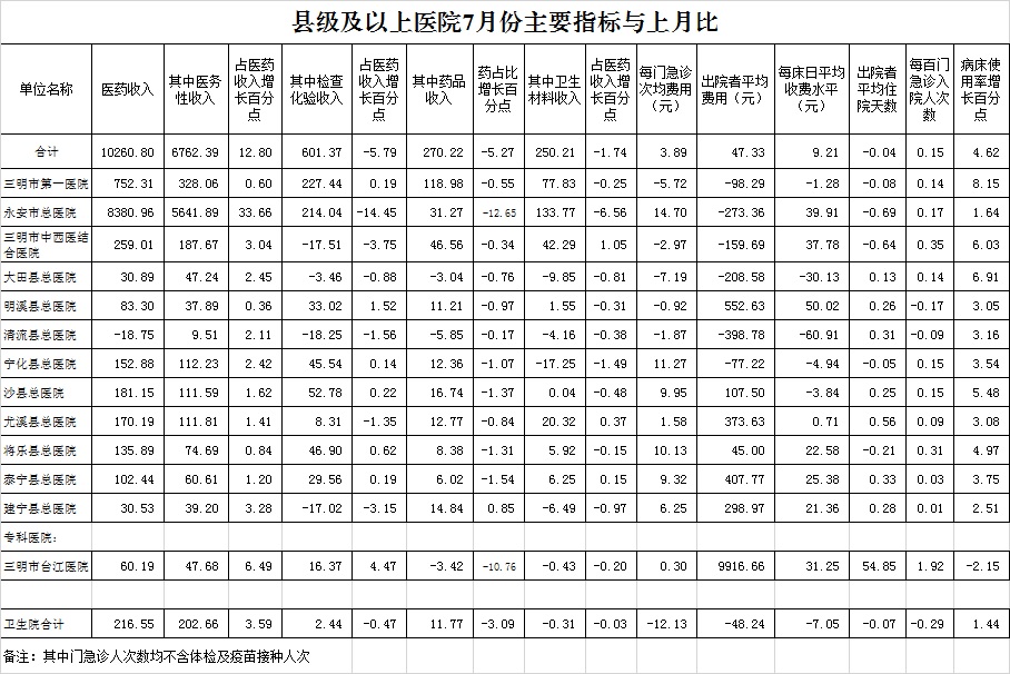 2021年7月三明市公立医疗机构运行情况