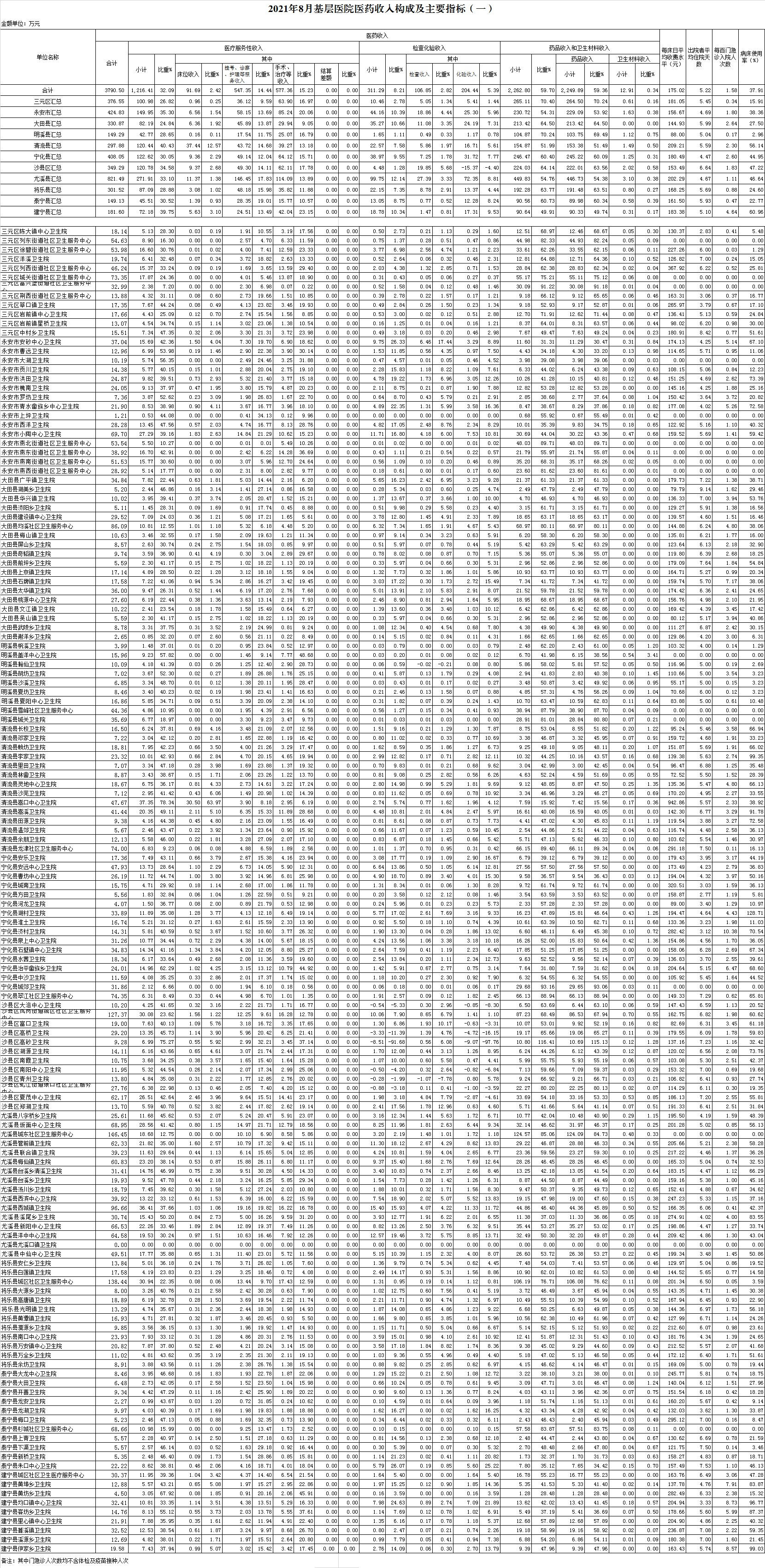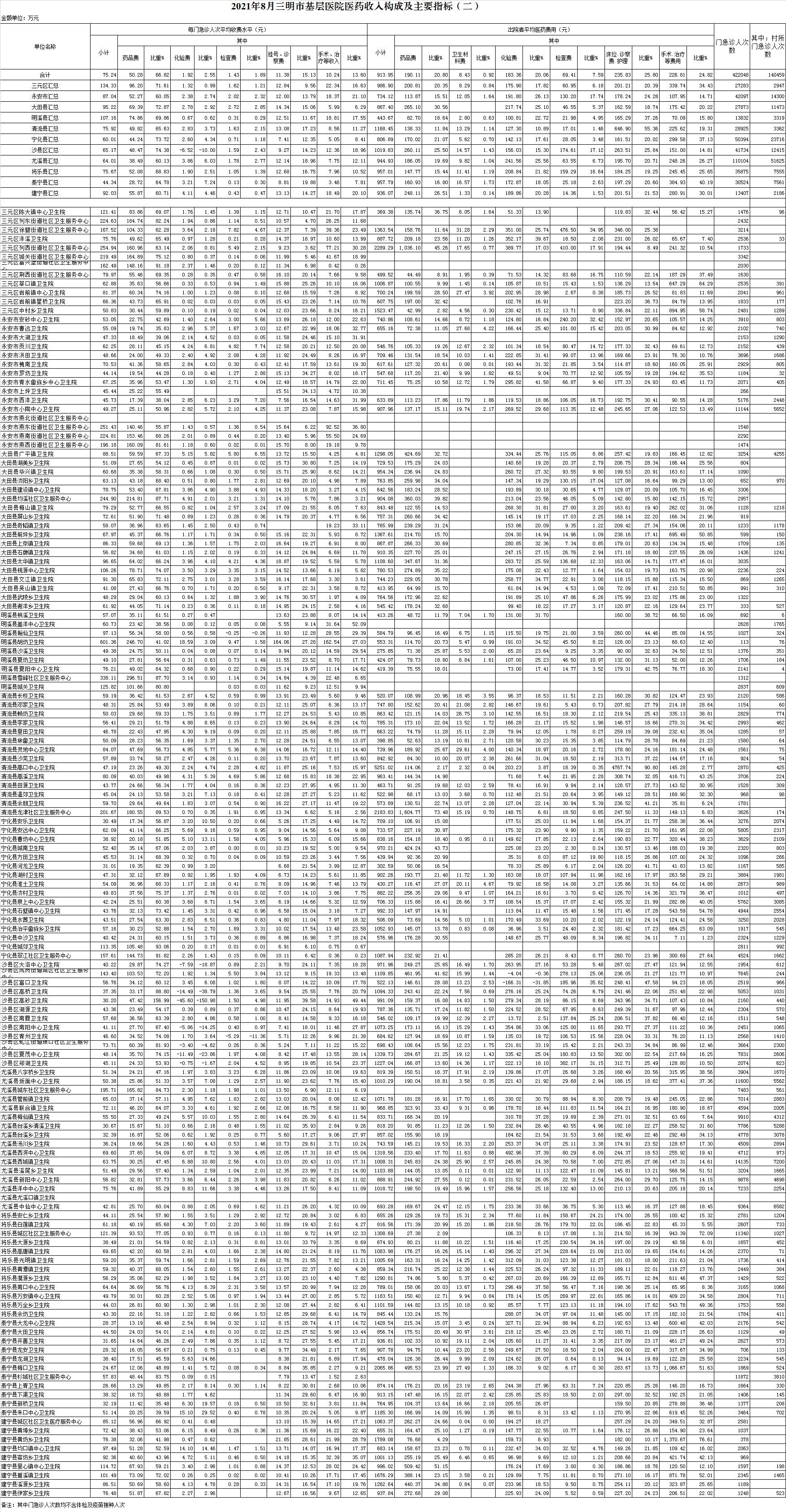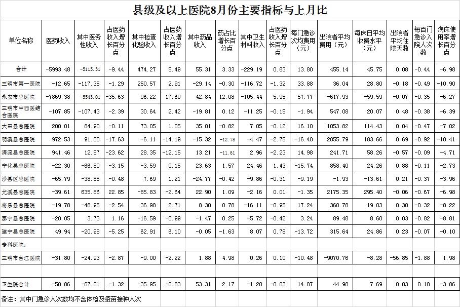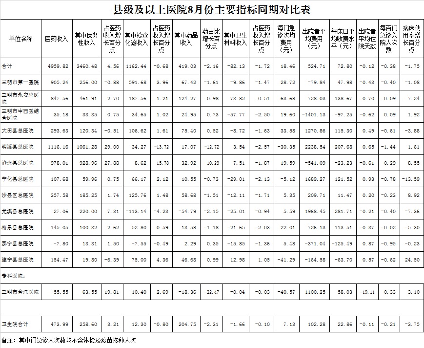 2021年8月三明市公立医疗机构运行情况