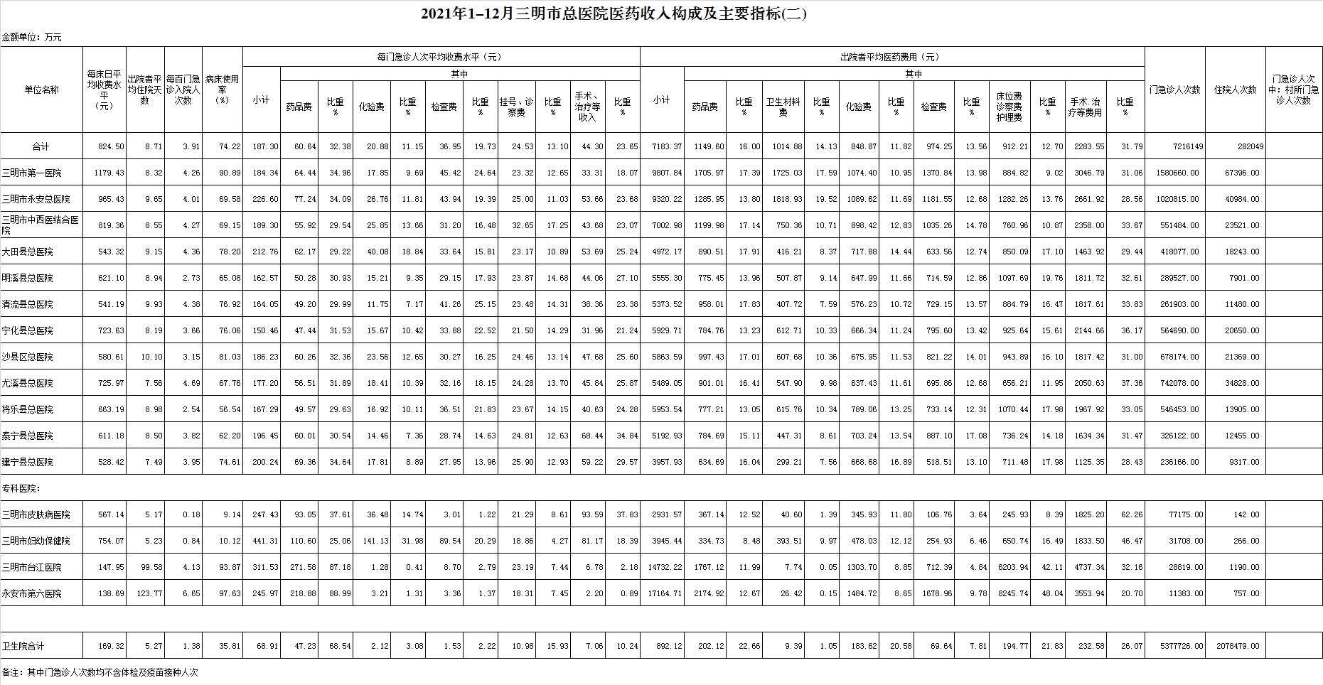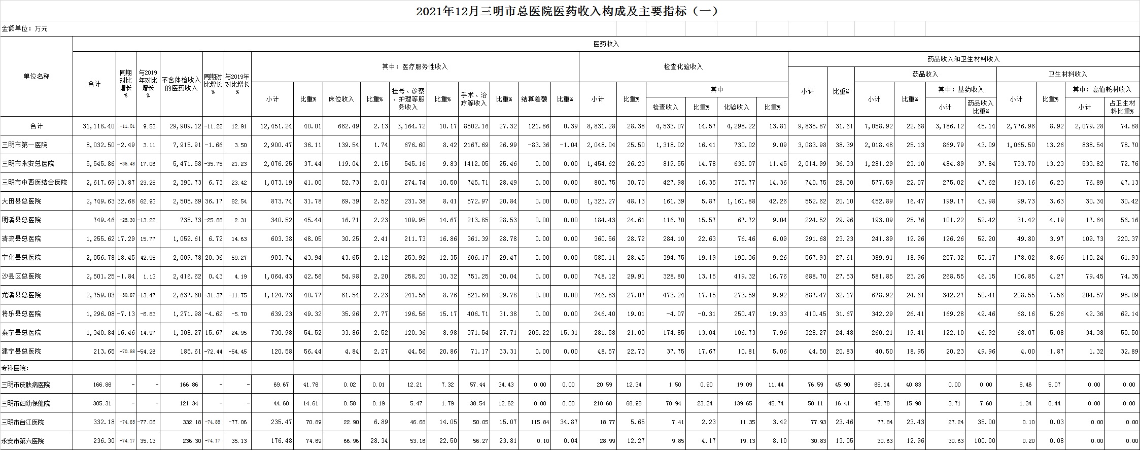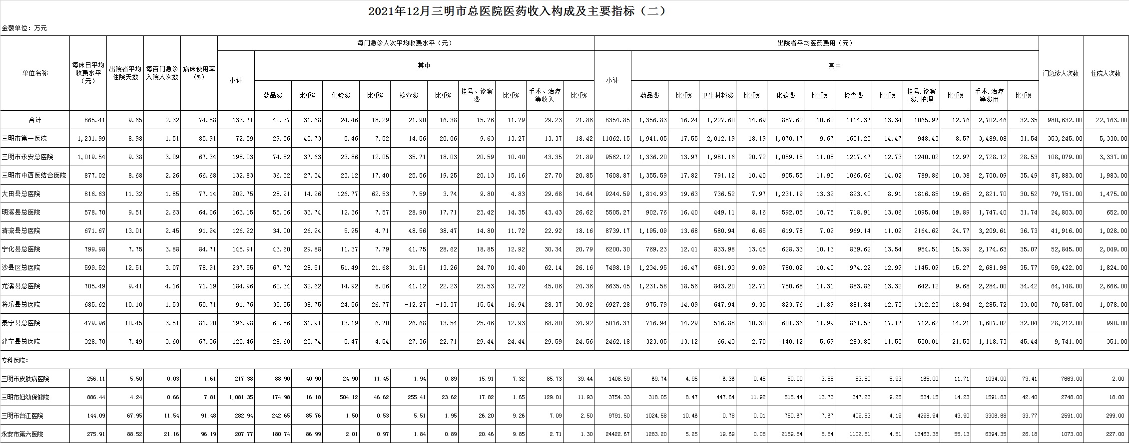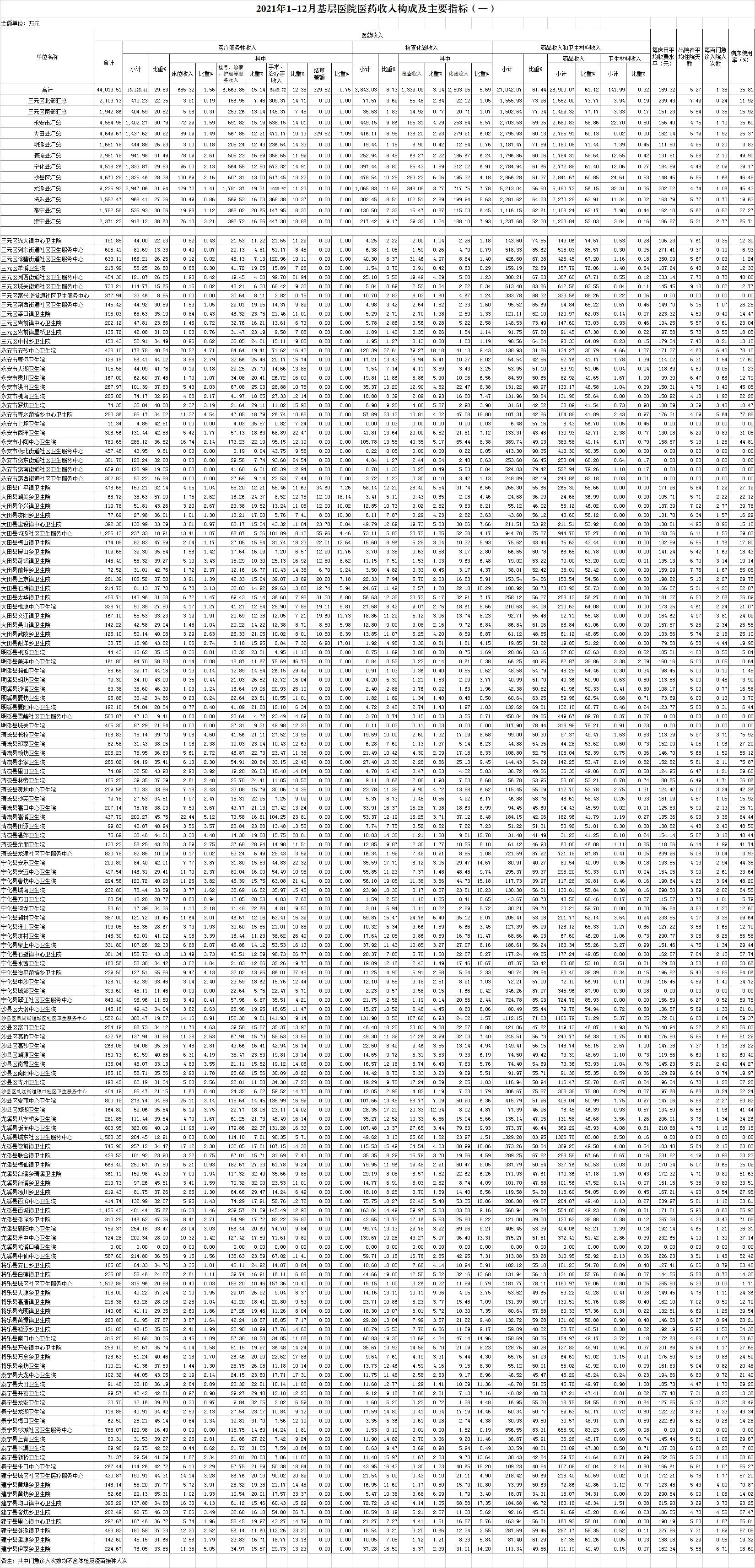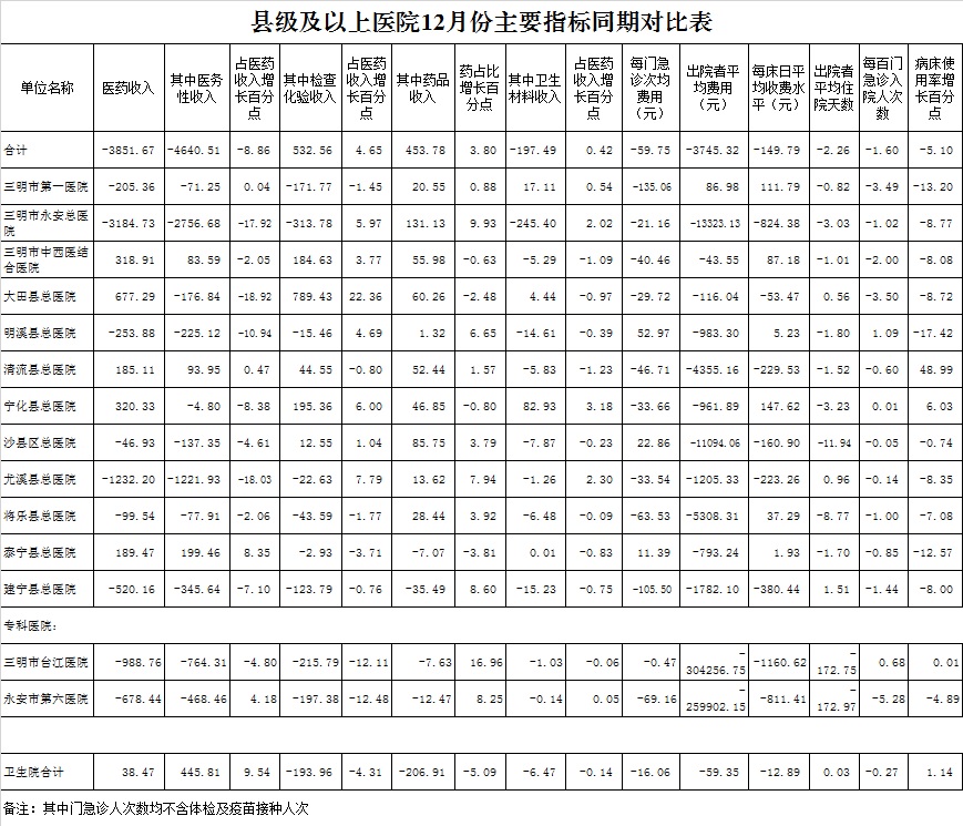 2021年12月三明市公立医疗机构运行情况