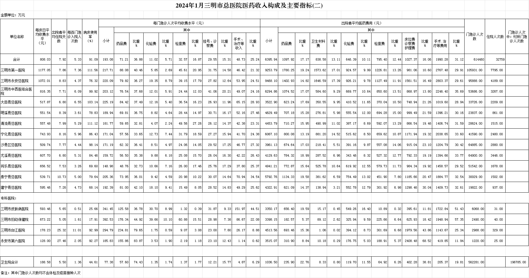 医疗服务性收入占比。1月份12家总医院医疗服务性收入占医药总收入44.25%,其中:市第一医院38.69%、三明市永安总医院42.33%、市中西医结合医院47.34%、大田县总医院45.46%、明溪县总医院46.99%、清流县总医院45.33%、宁化县总医院48.36%、沙县总医院48.88%、尤溪县总医院48.46%、将乐县总医院45.59%、泰宁县总医院50.6%、建宁县总医院52.08%,市第一医院和永安、大田、明溪、清流、将乐县安总医院未完成考核指标。