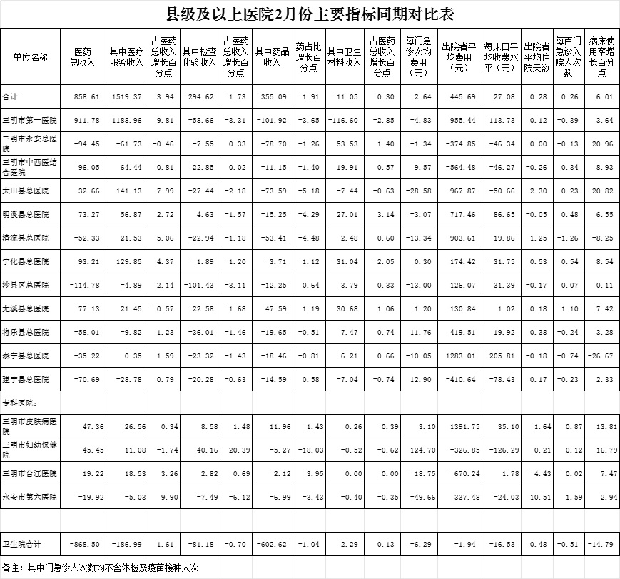 2025年2月三明市公立医疗机构运行情况