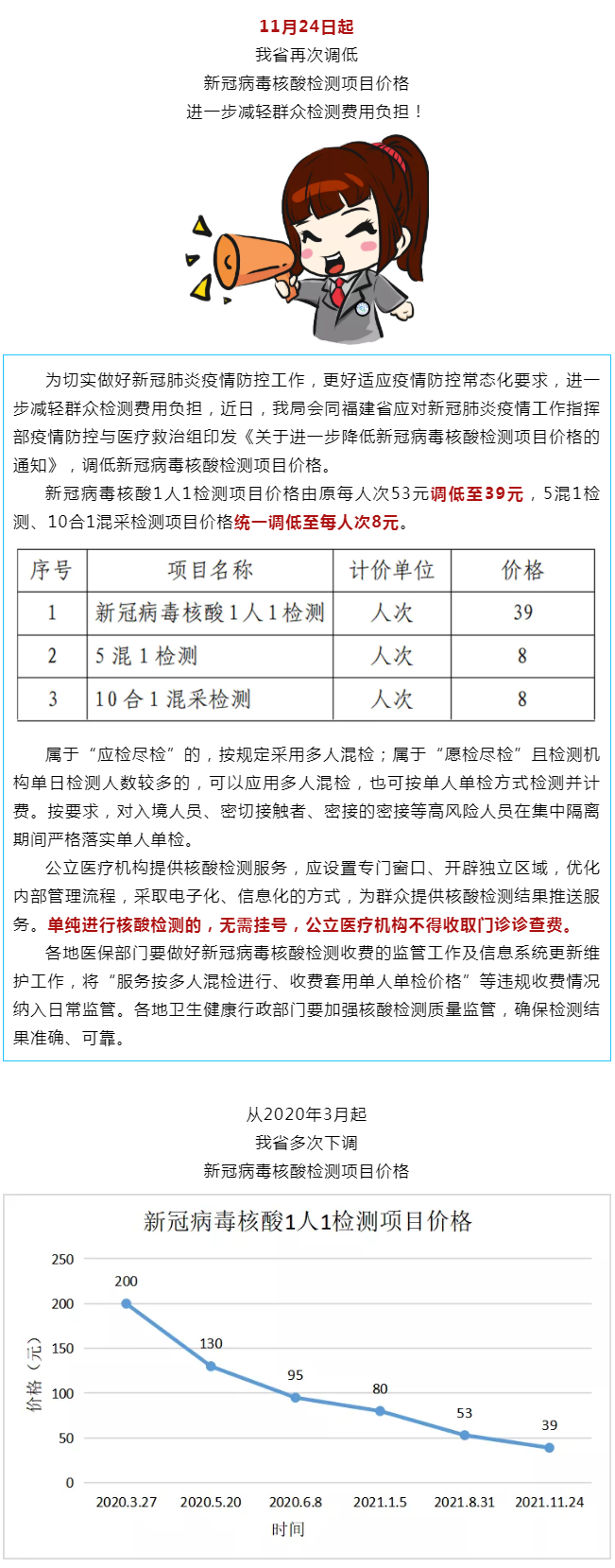 11月24日起,我省再次调低新冠病毒核酸检测项目价格