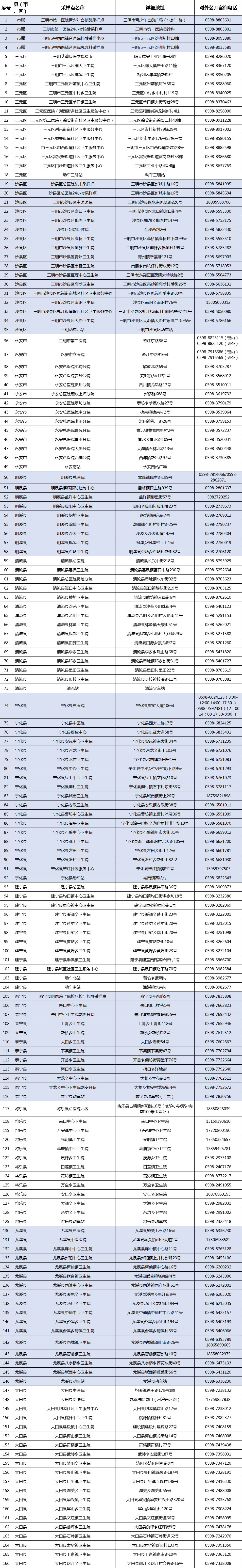 三明市春节期间“愿检尽检”核酸采样点信息一览表