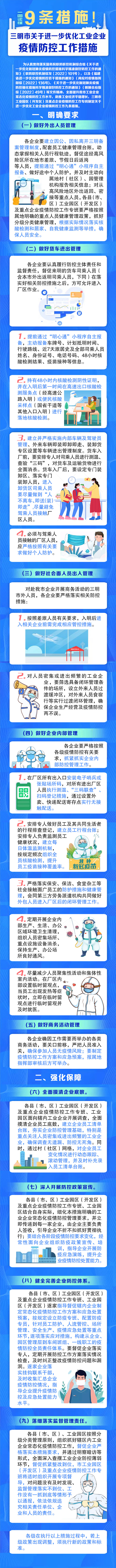 三明市出台关于进一步优化工业企业疫情防控工作9条措施