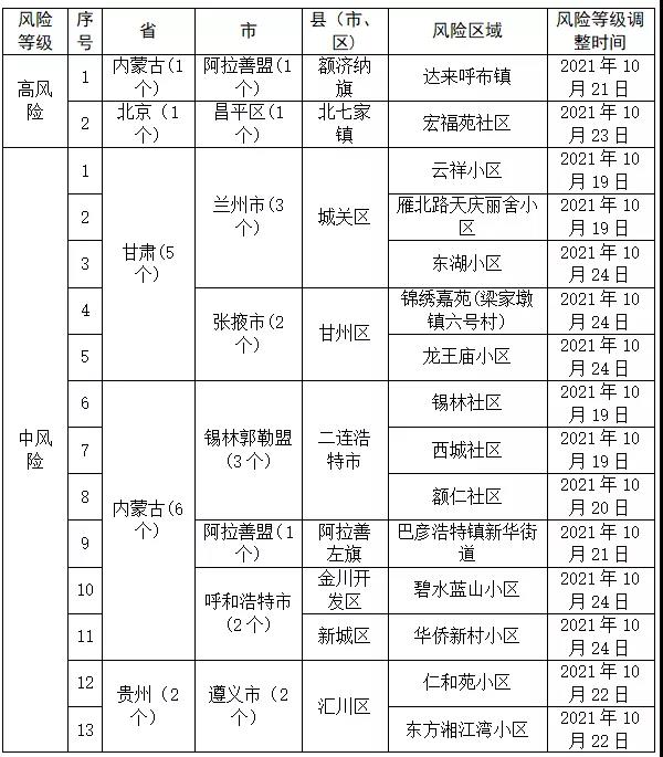 附件:国内中高风险地区一览表(截至2021年10月27日24时)