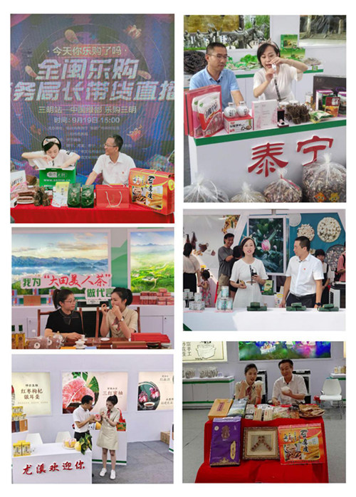 9月19日,“全闽乐购 乐购三明 迎国庆 庆丰收”——919电商节暨农民丰收节在三明市会展中心开启,同时配套多项优惠活动。展销会产品丰富,分为商务局长直播间、示范县特色展区、小吃区等。“商务局长直播间”直接搬进展会,商务局长们通过抖音、广电网络以逛吃的方式,直观的展示了三明的好山好水好产品。向广大网友们推介三明优质农特产品。抖音直播间最高峰8.9万人同时观看,两个平台总观看量超94万人次。