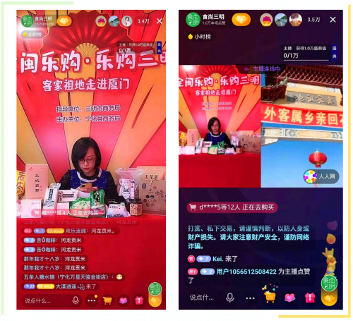 10月13日-18日,在第26届世界客属石壁祖地祭祖大典活动期间,由福建省商务厅、宁化县人民政府主办举办“全闽乐购,八闽美食嘉年华”系列活动在宁化县拉开序幕,并同步通过抖音、海博TV、直播福建等平台全程直播,推介客家祭祖活动及销售宁化特色产品。河龙贡米、宁化薏米、湿炒花生、蜂蜜、百香果等十余种本地农特产品在食尚三明抖音平台参与直播,截至2020年10月18日18时,食尚三明抖音平台最高峰8.9万人,总观看量56.86万人次,线上线下销售额达326.29万元。