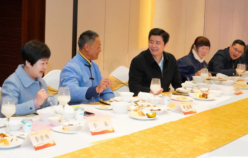 市领导与农民工代表边吃边聊,了解大家工作待遇、家庭生活、社会保障等情况,询问存在的困难问题和意见建议,并向农民工朋友发放暖心礼包、合影留念。