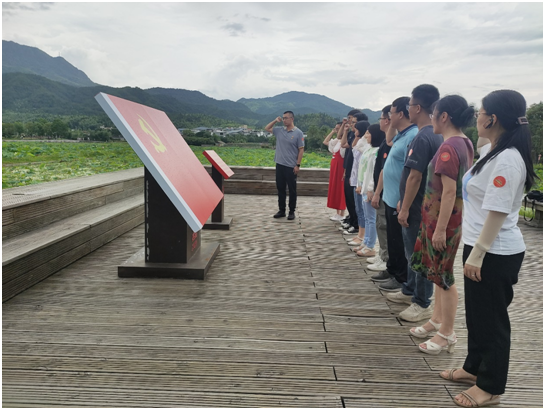 在这里,大家重温了一次入党誓词。面对鲜红的党旗,党支部书记以普通党员身份参与宣誓,全体党员高举右拳,庄严宣誓“我志愿加入中国共产党,拥护党的纲领,遵守党的章程……”。大家用铮铮誓言抒发了对党的忠诚和敬意,表达了永远跟党走的信念和决心。