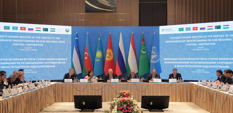 2019年5月3日,中亚禁毒区域合作谅解备忘录签约国会议在乌兹别克斯坦首都塔什干通过联合宣言,决定加强合作,共同打击中亚地区非法贩运毒品、滥用毒品和精神药物的行为。来自哈萨克斯坦、吉尔吉斯斯坦、塔吉克斯坦、土库曼斯坦、乌兹别克斯坦、俄罗斯、阿塞拜疆以及联合国毒品和犯罪问题办公室等的代表出席会议。新华社记者 蔡国栋 摄