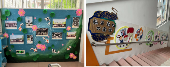 一是空间改造,营造文化氛围。创设朱子文化阅读滋养吧、成长展示厅、情境体验场等,充分激发朱子文化活力,让幼儿在浓厚的文化氛围熏陶下品悟灿烂文化,滋养心灵,从而有效促进幼儿良好品德的养成。二是墙面创设,激发互动愿望。借助“朱子故事我来讲”“朱子礼仪我来学”“朱子故里我来画”特色文化墙与幼儿进行充分互动,让幼儿在讲故事、学礼仪、画古建筑的过程中,传承传统文化,践行文明礼仪。三是班级建设,彰显文化特色。将朱子文化和班级主题课程相结合,进行环境创设和组织课程。如设置朱子图书馆、小沈郎超市、朱子家训墙,开展《朱子面》韵律活动、《朱子挑战赛》社会综合活动等,让幼儿在环境作用和课程影响下,感受朱子文化真谛,彰显班级文化特色。