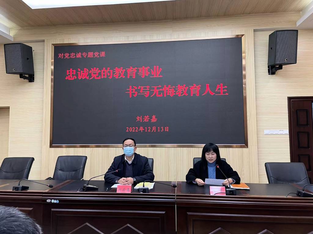 为持续深化“一季一警示”教育,进一步增强局机关全体党员干部廉洁自律意识和拒腐防变能力,引导广大党员干部始终做到忠诚于党的领导、党的信仰、党的宗旨、党的组织、党的事业,12月13日下午,市委教育工委书记、市教育局党组书记、机关党委书记刘若嘉为局机关全体党员干部上了一堂严肃而又生动的对党忠诚专题党课。