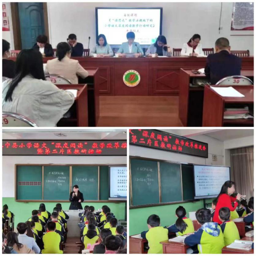 学校启动“小学语文深度阅读课堂教学模式改革”研究,以研促教,推进课堂教学变革。一是以专家为引领。聘请省普通教育教学研究室教研员黄国才老师为深度阅读教学改革总指导,定期来校指导督促阅读活动开展。二是以课题为抓手。学校现有省级课题一项、县级课题三项,围绕课题,充分开展课堂教学模式研究。三是以课堂为阵地。紧紧抓住课堂教学这一主阵地,在省、市、县名师送教送培下乡,观摩研讨等教研活动中,充分展示学校小学语文“深度阅读”的课堂教学模式研究成果。