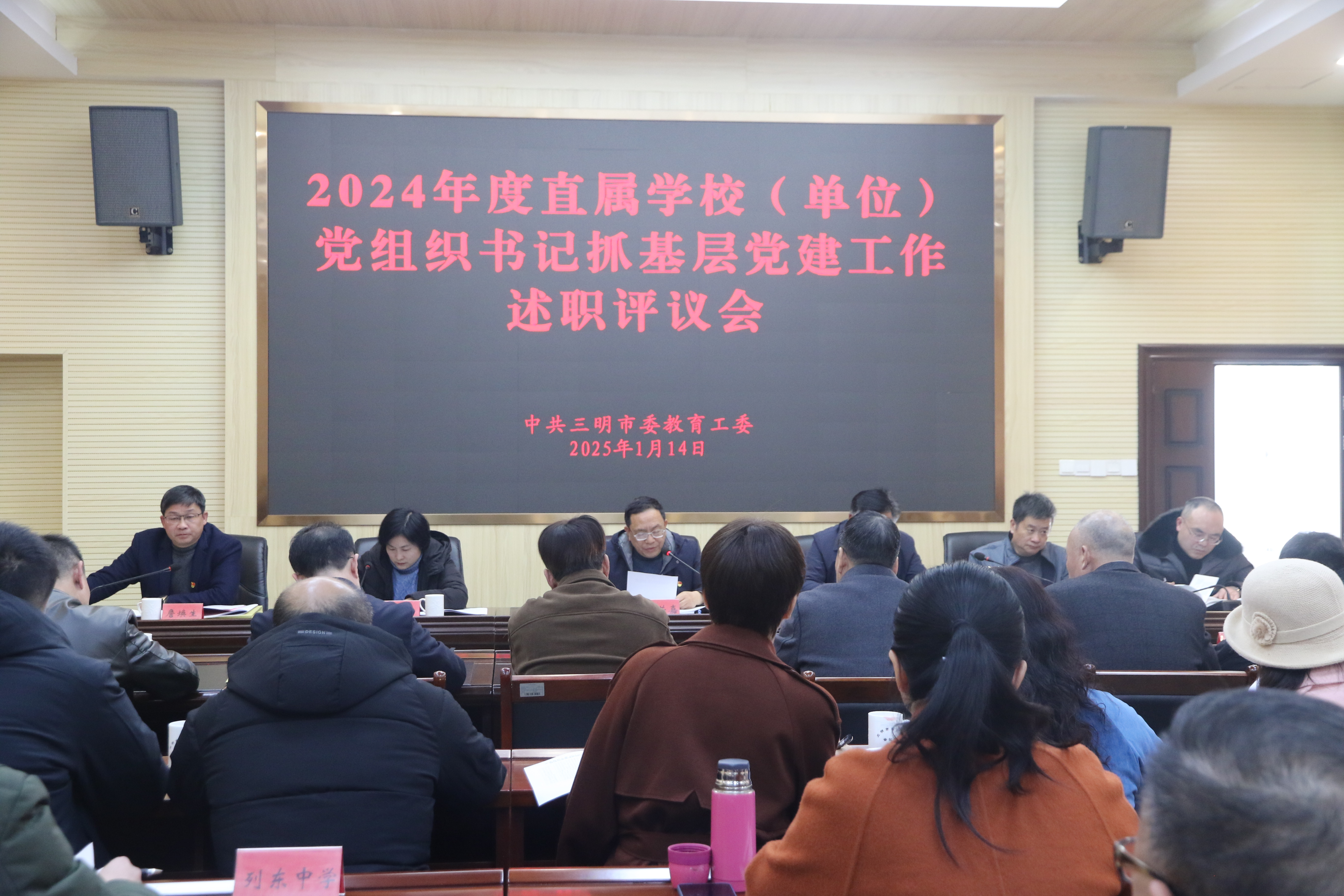 会上,三明市第二中学、三明市农业学校、三明市实验小学、三明学院附属小学、三明市第二实验幼儿园、三明市综合实践学校、三明北附高级中学等7所学校党组织负责人,分别就2024年度抓基层党建工作进行现场述职并接受逐一点评,其余学校(单位)党组织书记进行书面述职,与会人员对述职对象开展了民主评议。
